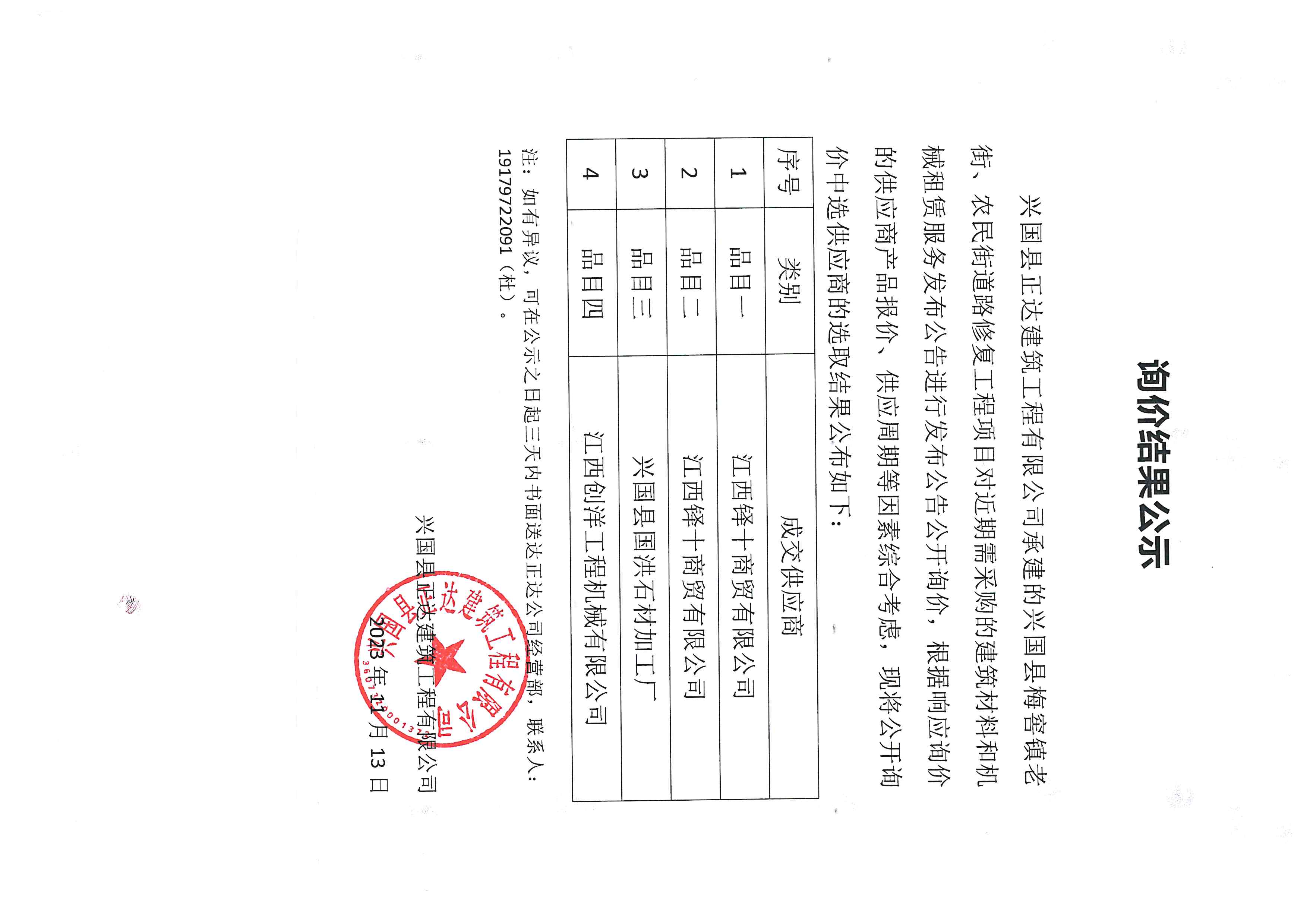 興國(guó)縣梅窖鎮(zhèn)老街、農(nóng)民街道路修復(fù)工程項(xiàng)目建筑材料、機(jī)械租賃服務(wù)采購(gòu)公開(kāi)詢(xún)價(jià)成交結(jié)果公示