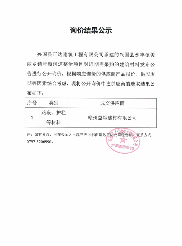 永豐鎮(zhèn)美麗鄉(xiāng)鎮(zhèn)圩鎮(zhèn)河道整治項(xiàng)目路燈、護(hù)欄等材料采購(gòu)公開(kāi)詢價(jià)結(jié)果公示